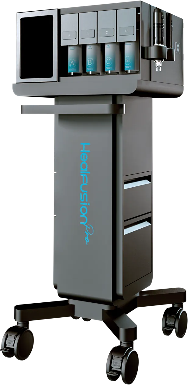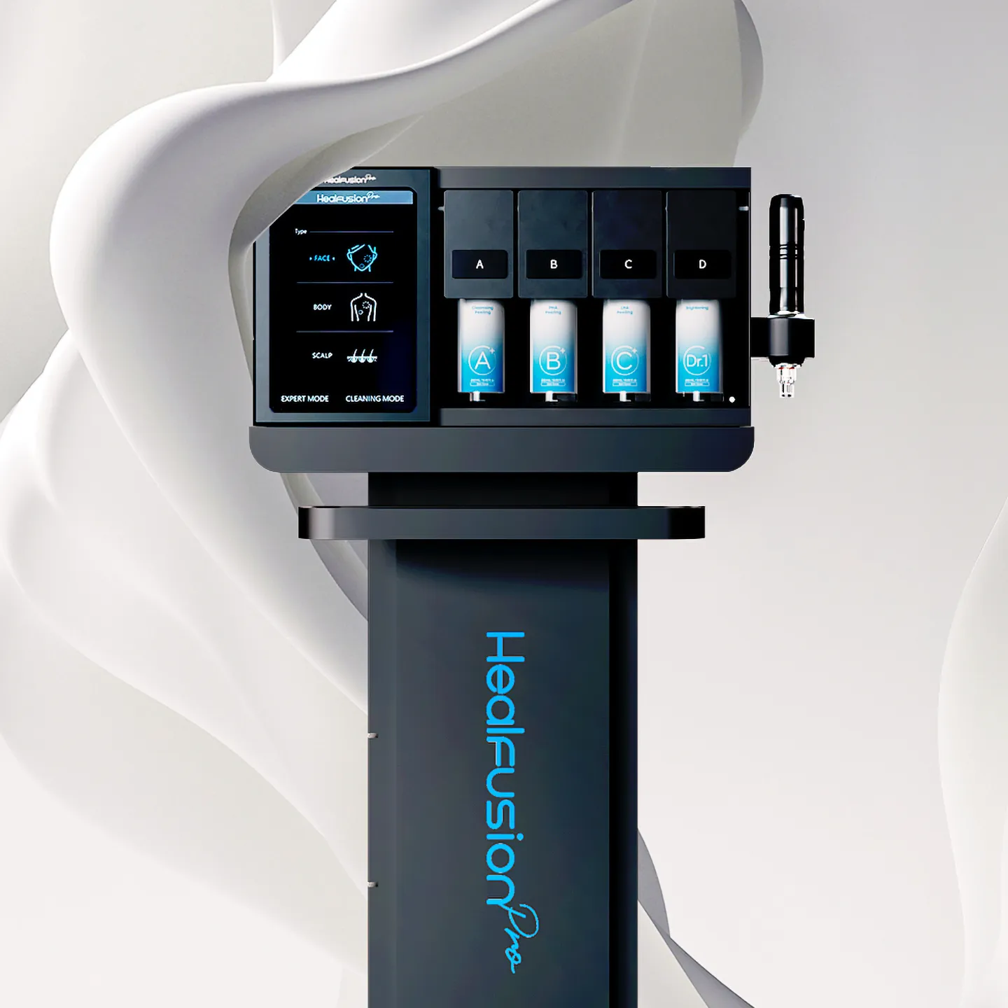 Healfusion Pro è un sistema professionale per detersione cutanea profonda, che utilizza un idrogetto a movimento rotazionale 3D con aspirazione vacuum integrata, per rimuovere impurità e preparare la pelle ai booster.